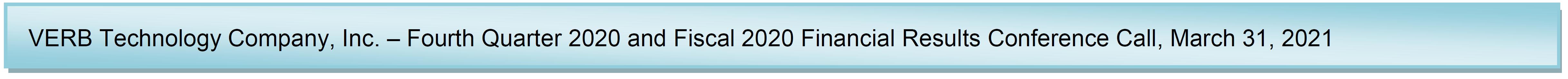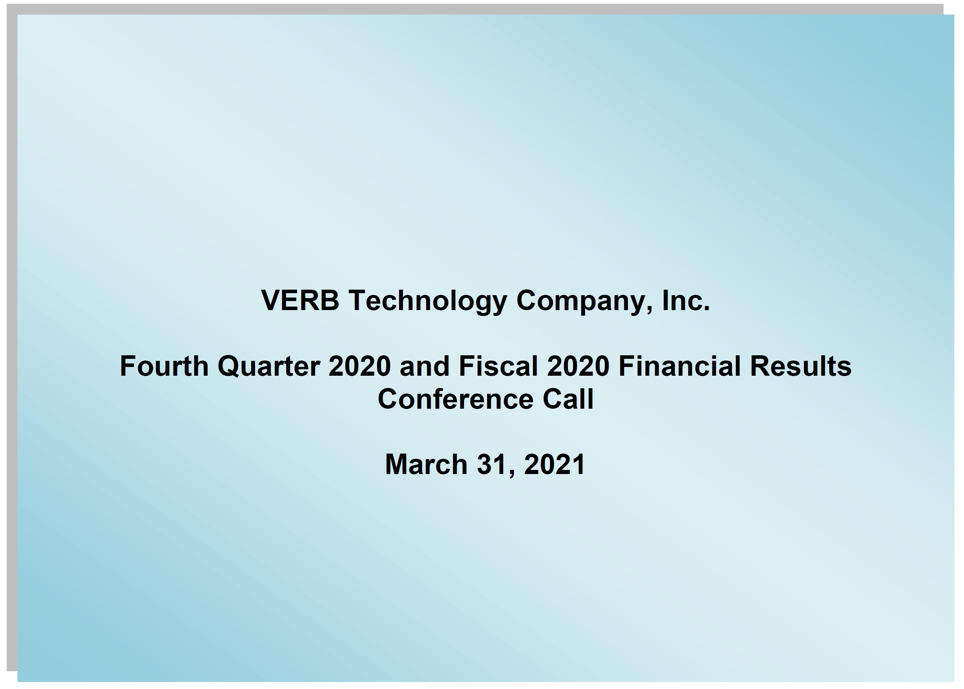 Good afternoon, and welcome to the Fourth Quarter 2020 and Fiscal 2020 Financial Results Conference Call for VERB Technology Company, Inc.