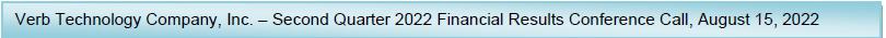 Good afternoon and welcome to the Second Quarter 2022 Financial Results Conference Call for Verb Technology Company, Inc.