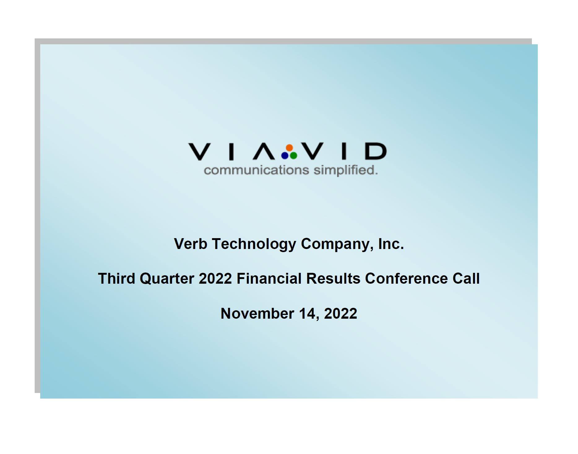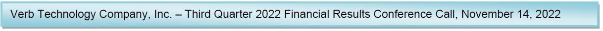 Good afternoon, and welcome to the Third Quarter 2022 Financial Results Conference Call for Verb Technology Company, Inc.